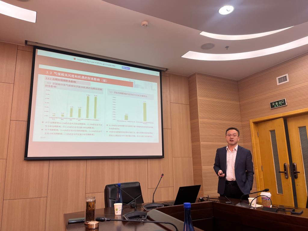 王鹏程教授的报告首先介绍了可持续相关财务信息披露和气候相关披露的一般要求,并借鉴代表性企业披露的实践经验,系统阐述了披露财务影响的基本原则和具体流程,包括如何开展气候相关情景分析,如何识别、评估气候相关风险和机遇,如何对气候相关风险和机遇进行优先性排序,如何分析气候相关风险和机遇的影响,如何分析气候相关风险和机遇对战略和决策的影响,如何构建模型并量化重大气候相关风险和机遇的财务影响,进而如何于财务报表和可持续发展报告中披露当期财务影响和预期财务影响进行系统地讲解。在论坛讨论环节,与会师生与王鹏程教授就银行的负责任融资与企业披露、产业政策与气候相关风险的披露等问题进行了讨论。