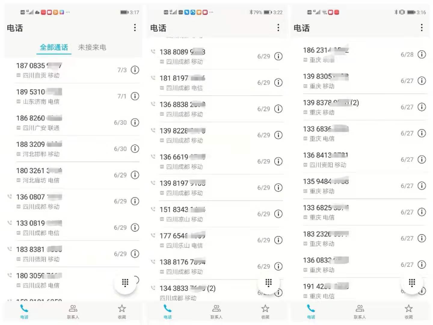 咨询热线来电截图