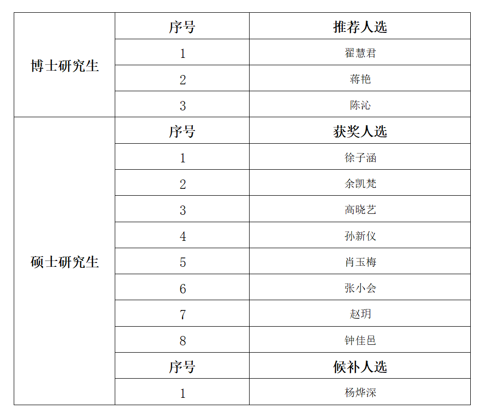 威廉希尔中文官网2022年研究生国家奖学金评审结果公示