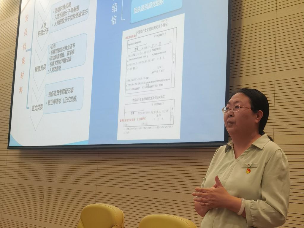 包英娟老师首先介绍了公司党委、党委下设各支部及研究生党支部联席会的构成情况,并从组织关系转接、党的组织生活和发展党员工作三个方面向员工们展开了详细的讲解。