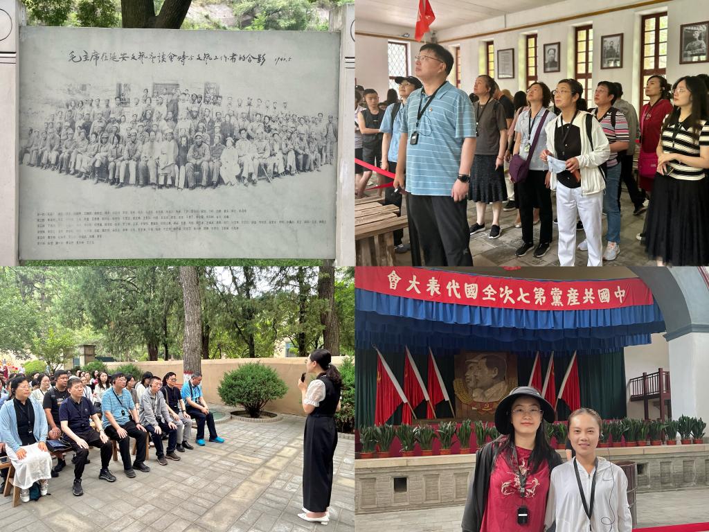 在杨家岭革命旧址,学员们走进延安杨家岭朴素庄严的中央大礼堂。简陋的条桌和木椅,依旧鲜艳的党旗,令学员们仿佛回到了1945年那个春日,回到了七百多人济济一堂、商讨国家前途命运的会场——中共七大。以史为镜,可以知兴替。而今,学员们置身于庄严肃穆的中共七大会场,感悟和触摸那段光辉灿烂的历史,依然感到极大的震颤和洗礼。