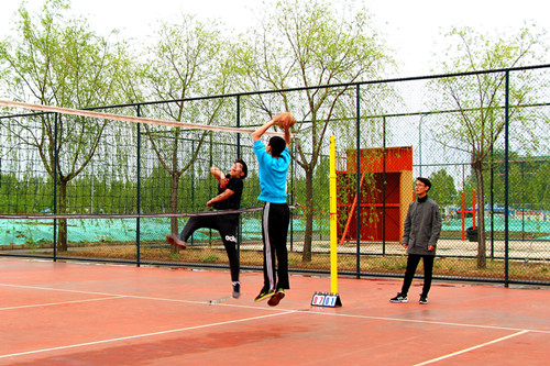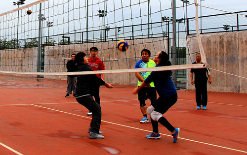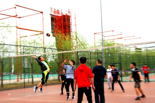 与此同时进行的是教职工队与研究生队的比赛,第一局比赛教职工队以22:25遗憾落败。第二局,重新调整状态的教职工队神勇发挥、连续得分,稳稳当当地扳回一城。第三局,教职工队几个强攻将比分差距迫近到11:13,无奈最后13:15两分憾负。这是一场精彩纷呈的比赛,最终研究生队获得胜利!
