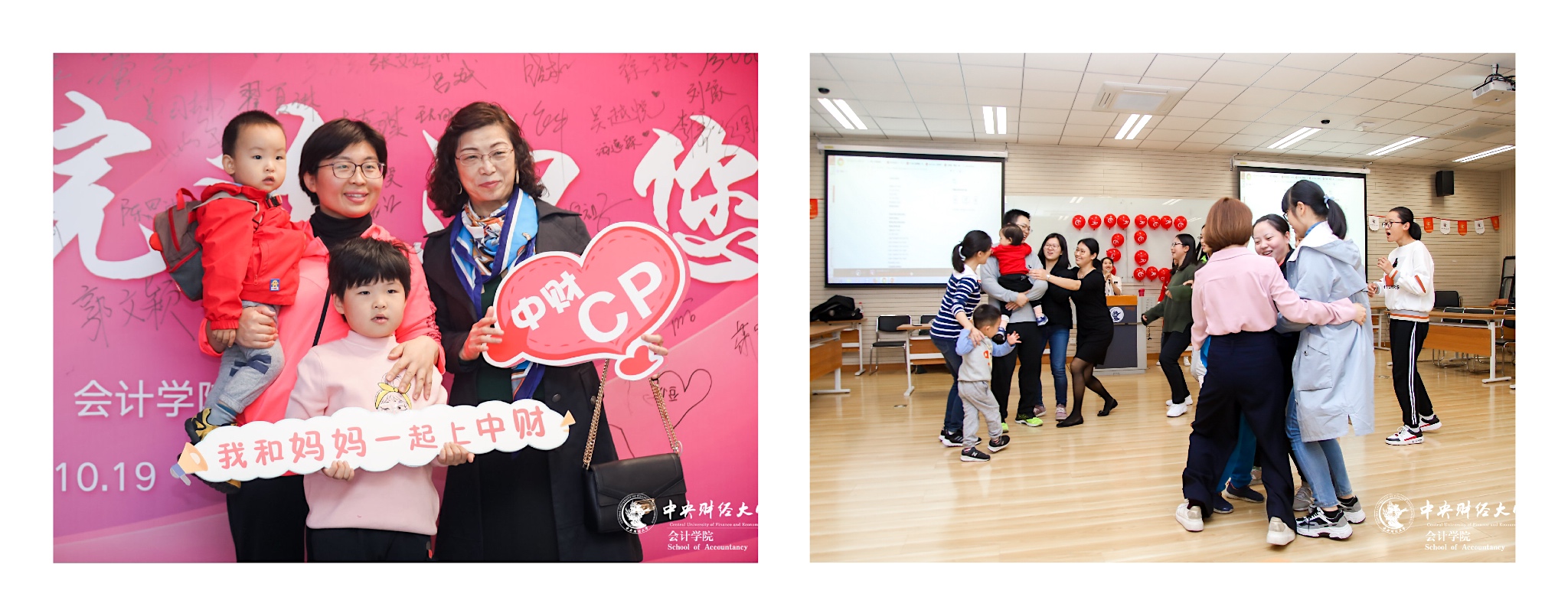 下午3时,主教学楼204教室却传出了孩童的欢声笑语,原来是多名员工携小宝贝参加亲子趣味活动,在自己曾经学习的教室感受亲子游戏的快乐。整个会场的布置温馨欢乐,彩色的气球、欢快的背景音乐和终极奖品——“财宝儿”玩偶也让小宝贝们兴致高昂,兴奋不已。比赛过程轻松愉快,小宝贝们各显神通,聪明应对,与员工们配合默契,表现十分优秀。“我和爸爸妈妈一起上中财”也成为了最流行的口号。