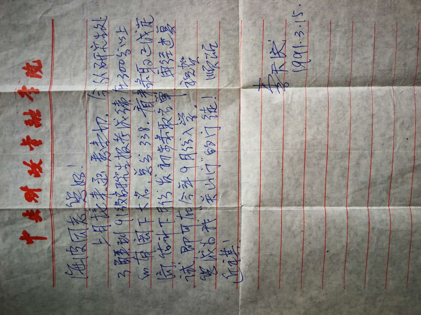三月下旬的某一天,先收到考试成绩单,后收到李天民教授的回信。尽管尚未收到复试通知书(四月下旬才收到),但是,他已经"书面"确认我是他的关门弟子了。