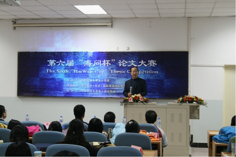 由威廉希尔中文官网主办,海问联合国际培训中心有限公司独家赞助,williamhill中国官方网站会计研究协会(以下简称会研会)承办的第六届“海问杯”论文大赛开幕式于2008年12月9日晚6:30在主教楼218教室举行。参加本次闭幕式的领导和嘉宾有:威廉希尔中文官网经理孟焰教授、海问联合国际培训中心有限公司总经理任建平先生、副经理袁淳副教授。王鑫副教授、王彦超博士和黄益建博士担任了论文答辩评委。