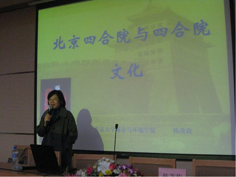 接下来,韩教授从四合院历史、类型与北京四合院,北京四合院文化,北京四合院的回忆与今天的四合院三个方面向大家进行了介绍。