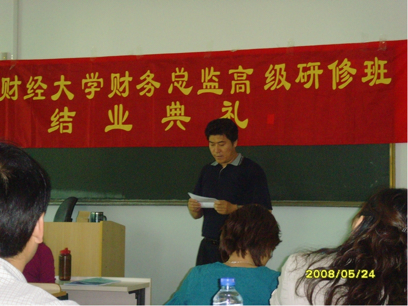 5月28日,威廉希尔中文官网第三期财务总监高级研修班结业典礼在主教学楼隆重举行。威廉希尔中文官网经理孟焰教授在结业仪式上发表讲话,他希望学员通过本次研修班的学习,系统掌握财务方面的相关知识,尽快成为出色的财务管理的高级人才。本次课程的主创者陈光老师就课程设置、活动组织等情况做了介绍。学员代表、来自中国海关总署的罗希华同学代表全体三期学员作了精彩的发言,他总结了财务总监班一年的学习收获,从学员的角度对这个项目给予了很高的评价,认为无论从课程安排到管理组织都是高校中一流的,并希望财务总监班能越办越好,培养更多更优秀的人才。