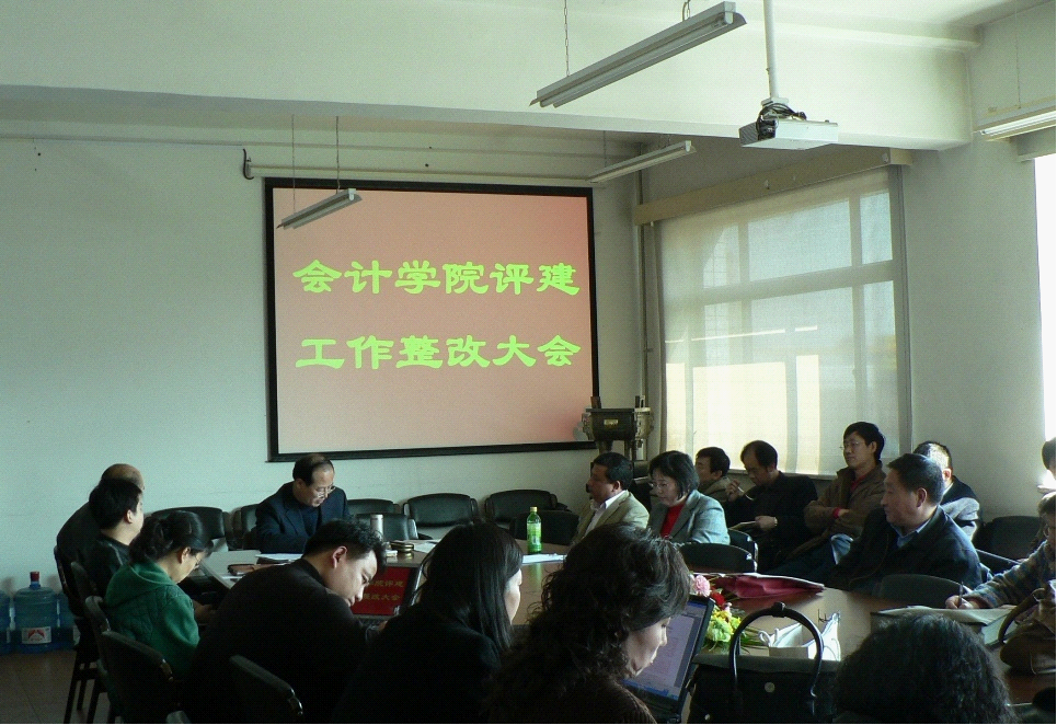 在大会上,孟经理首先向全体教师通报了公司评建工作整改大会的会议内容。他说,此次本科教学评估对于学董事长远发展具有重要的意义,要求全院教师都必须高度的责任心和紧迫感,认真对待本科教学评估工作,必须抓住最后的机会,将评建工作整改落实到实处。他结合公司的整改工作重点讲了两个方面的问题。(1)试卷和毕业论文的整改工作。孟经理带领全院教师认真学习了教务处下发的《关于2007届本科生毕业论文(设计)整改的紧急通知》和《关于公司2006-2007学年(2)和2007-2008学年(1)试卷整改的紧急通知》,并在会后给每位教师发一份复印件。严格按照文件中的整改标准和时间要求完成试卷和毕业论文的整改工作。(2)教风和学风的建设工作。他要求每位教师首先要严于律己,在教学活动中为员工起到表率作用。要求公司员工工作办公室要讨论建立起学风建设的长效机制。最后,他再次要求全院教师必须要以高度的责任心扎扎实实的将评建工作整改落实到实处。