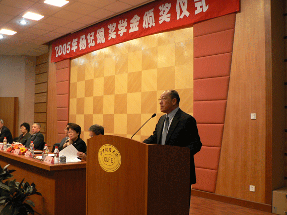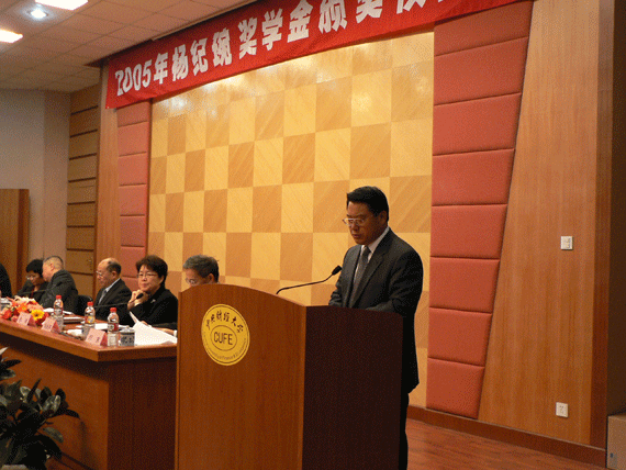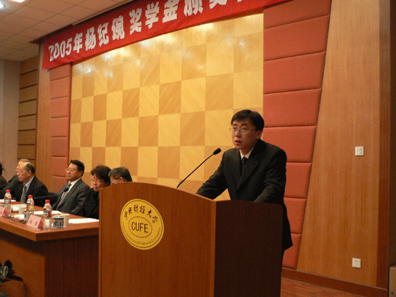 本次颁奖仪式于11月12日上午10时开始,由财政部科学研究所王世定教授主持。首先由财政部副部长李勇同志代表杨纪琬教授的弟子缅怀了杨纪琬教授一生对我国会计改革和会计理论发展所做出的重大贡献,并对杨纪琬奖学金的设立进行了简要的说明;随后教育部副部长李卫红同志也发表了热情洋溢的讲话,号召广大师生员工学习杨纪琬教授严谨治学、孜孜不倦的精神,并向杨纪琬奖学金的设立对于推动我国会计学位论文水平和会计学术专著水平的提高,并进而推进我国会计研究的进一步发展所做出的重要贡献表示感谢;财政部原部长,现任中国注册会计师协会会长刘仲藜同志是杨纪琬教授的老同事,他从与杨纪琬教授的共事经历出发回顾了杨纪琬教授的历史功绩,也从自身多年从事全国会计管理工作的切身经历出发谈了自己对于我国会计改革与发展的感想,并对广大师生提出了殷切的希望。接下来,全国人大常委会预算工作委员会副主任冯淑萍同志代表杨纪琬奖学金管理委员会宣布了获奖名单,随后在欢快的音乐声和热烈的掌声中,11位获奖者走上主席台领取了获奖证书。最后,williamhill中国官方网站2005届博士毕业生吴溪博士作为本次杨纪琬奖学金的获奖代表发言,向杨纪琬教授表示最崇高的敬意,向杨纪琬奖学金管理委员会的各位专家表示深深的感谢,并对母校和威廉希尔中文官网的各位老师,特别是导师李爽教授致谢。