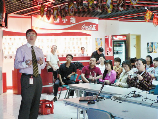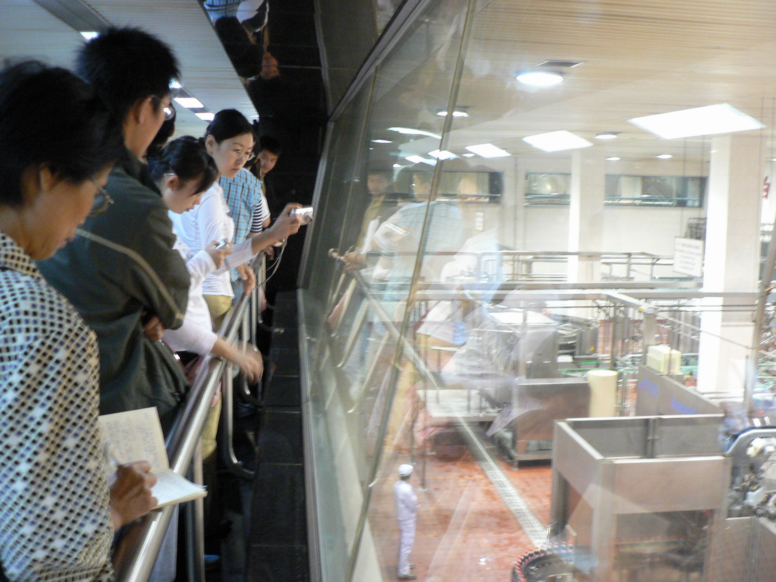 首先,学员们在工作人员的带领下参观了生产线,详细地了解了可口可乐的生产流程、制作工艺及饮用常识。北京可口可乐公司以“先进的设备、严格的工艺、科学的管理、优质的产品”为宗旨,主要生产可口可乐、雪碧、芬达及醒目、天与地、冰露、酷儿等饮料,在北京饮料市场一直名列前茅。接着学员参观了展览大厅,展示分为“前言”、“历史篇”、“中国篇”、“北京篇”、“运动篇”、“科技环保篇”,陈列物品形象生动,引起了学员的浓厚兴趣。
