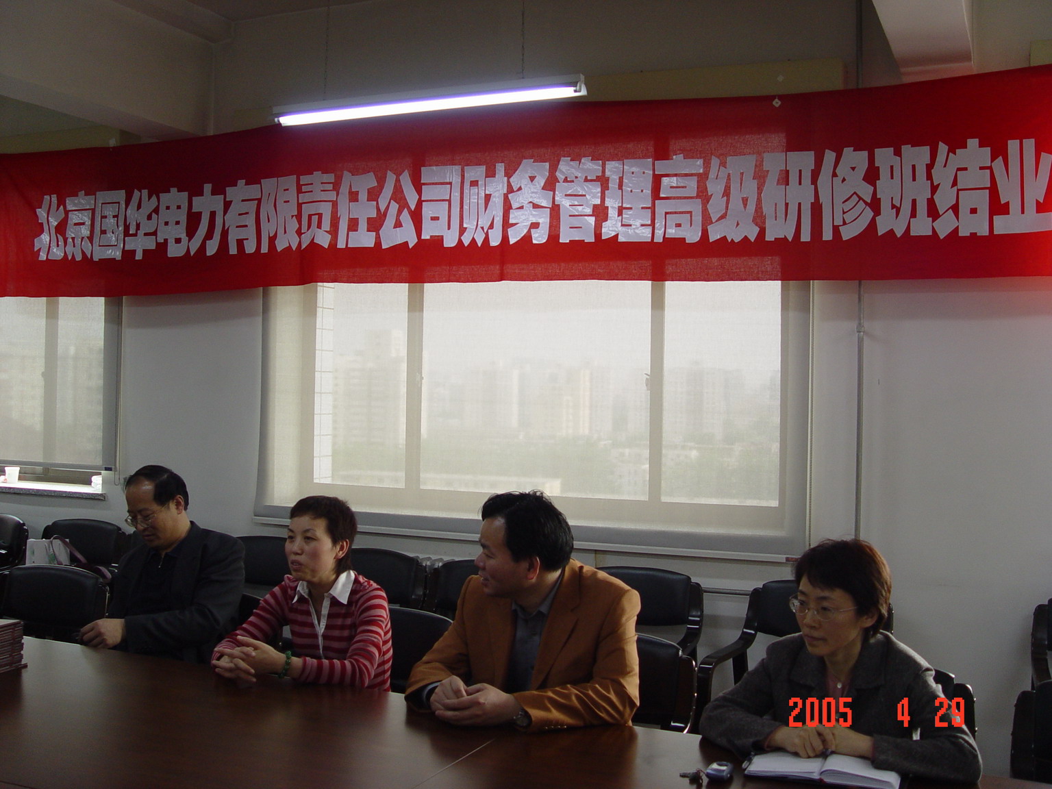 2005年4月29日下午,威廉希尔中文官网举办的“北京国华电力有限责任公司(以下简称‘国华电力’)财务管理高级研修班第一期”毕业典礼在威廉希尔中文官网大会议室举行。威廉希尔中文官网经理孟焰教授,党总支书记、副经理杨金观教授,副经理黄德忠,国华电力财务总监杨文静以及此次毕业的17名学员共同出席了典礼。