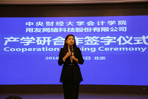 用友网络科技股份有限公司助理总裁付建华在讲话中指出,双方合作基于优势互补、平等合作、互惠互利、共同发展的基础,以促进教育科研、经济和社会文化和谐发展、共同进步为目标,通过企业课题研究、教学案例开发、员工实习实践、企业FSSC体验中心和阿米巴体验中心建设等形式进行,致力于研究开发先进的企业管理会计、财务共享服务理论体系和创新会计硕士人才培养模式,达成公司、企业和社会的三方共赢。
