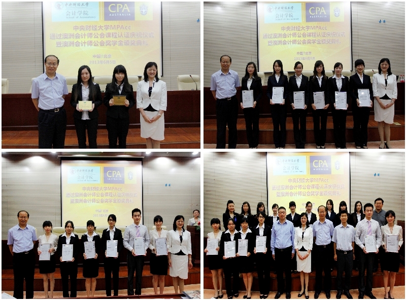 接着,孟焰教授和王瑾女生为两名MPAcc员工和一名本科生颁发了每人价值13000人民币的澳洲会计师公会考试奖学金以及为12名本科生颁发了澳洲会计师公会优秀奖学金。