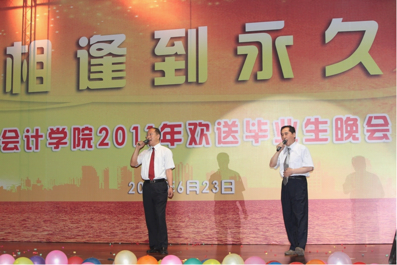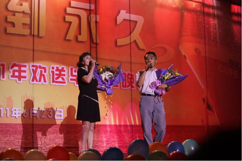 令全场掀起高潮的是老师们的表演:孟焰经理与任德荣老师慷慨激昂的一曲《再见吧妈妈》,展现着别样的眷恋之情;即将退休的郄尔平老师为大家深情朗诵的《再别康桥》,唤起同学们的惆怅的离别之绪;陈守中老师、白玉芳老师演绎了精妙绝伦的情歌对唱《康定情歌》,诠释别样的师生情!