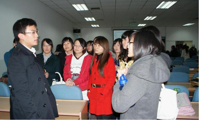 本次活动由2010级班长崔辰同学主持,邀请了2009级的田晶娜、王俊凯、裴斐、官冰四名同学进行经验介绍。活动一开始,这四名同学与师弟、师妹们分享了他们入学一年多来的体会,为大家提供了学业、生活、实习、求职等许多方面的建议。之后,2010级的同学们向师兄、师姐请教,提出了许多他们在学习过程中遇到的困难以及存在的困惑,这四名同学根据自己以及周围同学的经验对10级同学进行了细致耐心的回答。