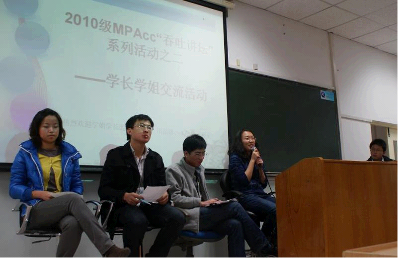 2010年11月5日(周五)威廉希尔中文官网2010级全日制MPAcc邀请了2009级MPAcc的同学举办了一场经验交流会,同时本次活动也是全日制MPAcc的特色活动——“MPAcc吞吐讲坛”系列活动之一。
