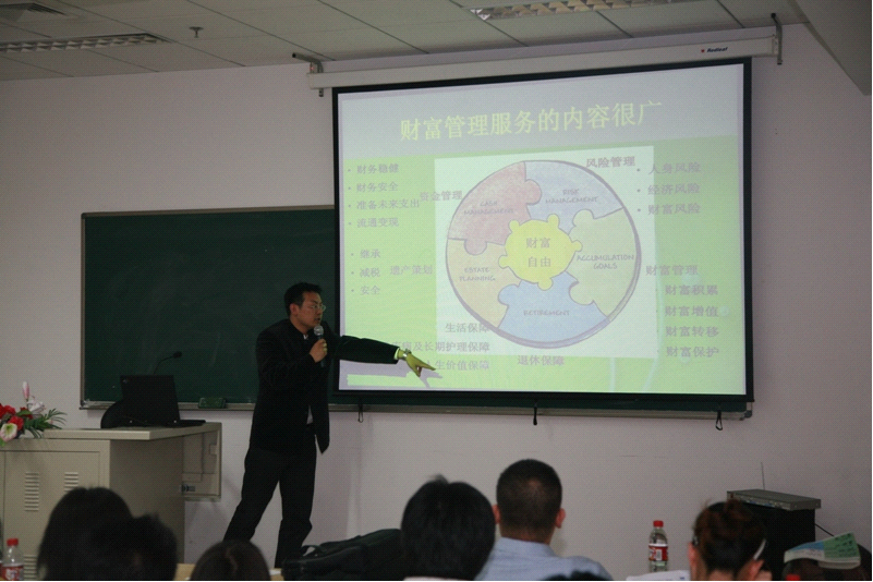 第二位主讲人是同样来自于荷兰银行的理财咨询经理尚晓飞先生。尚晓飞先生的讲座内容偏重于个人理财,他分别从资金管理、风险管理、退休管理等几个方面来分析个人理财的几个关键点和应该注意的问题,指出了个人理财中投资的风险和不投资的风险,针对不同的资金情况提出了理财的策略。对于这个与每个人都很相关的问题,大家听的十分投入,并积极的提问交流。