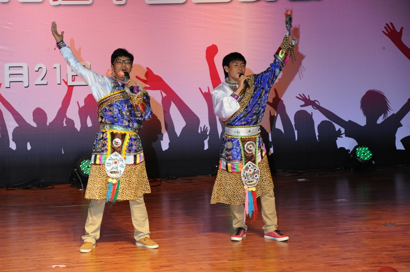 沙河的2009级本科生布加和2010级本科生亚美土贵联袂为观众带来了歌舞《吉祥谣》,他们用悠扬的歌声唱出了对学长学姐的美好祝福。