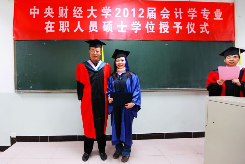 2012年4月7日上午9:30,williamhill中国官方网站2012届会计学专业在职人员硕士学位授予仪式在主教218教室隆重举行。仪式由威廉希尔中文官网副经理袁淳教授主持,经理孟焰教授为毕业学员颁发学位证书并发表了热情洋溢的讲话。