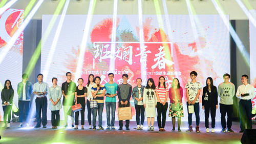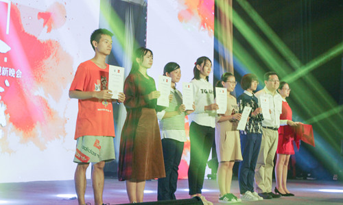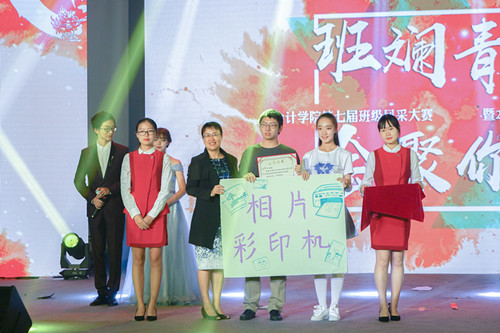 时间匆匆流去,晚会接近尾声,现场工作人员统计好2016级各班班风展示的评比总分,由在场的各位领导老师为获奖班级颁发奖状和奖品,图为会计16-2班夺得了“最佳风采奖”的荣誉。