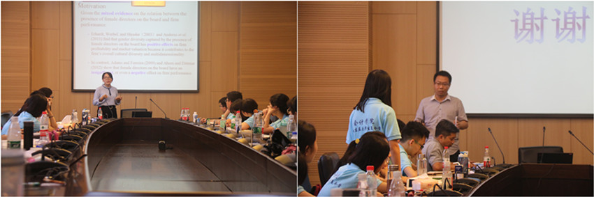 下午,郑登津老师与营员们进行亲切交流,分享了会计研究的知识储备、技术基础及个人硕博连续学习的心得体会,受到同学们的热切欢迎。随后,迎来了个人展示环节。同学们用精美的PPT展示了自己的个人情况、学术经历和研修计划等。来自不同公司,甚至不同专业的小伙伴们个个实力不凡,丰富的经历以及良好的表达,不仅惊呆了小伙伴,也让老师们刮目相看。