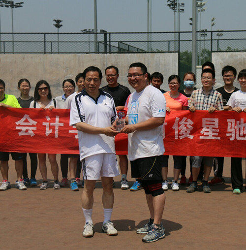 公司党委副书记陈明老师为冠军队颁奖