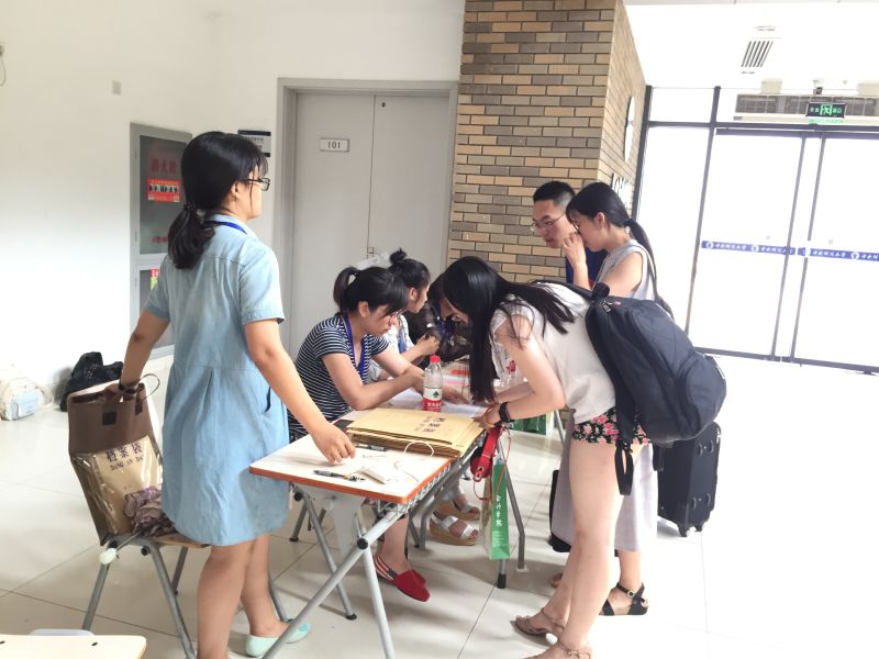 7月11日下午,来自全国各地夏令营营员陆续来到3号楼大厅报道。炎热的夏日,志愿者们在校门口迎接每位营员的到来,为营员们引路、精心细致的为营员们办理入营手续、将营员一一送至住处。志愿者们热情周到的服务,让营员们体验了宾至如归的感觉。