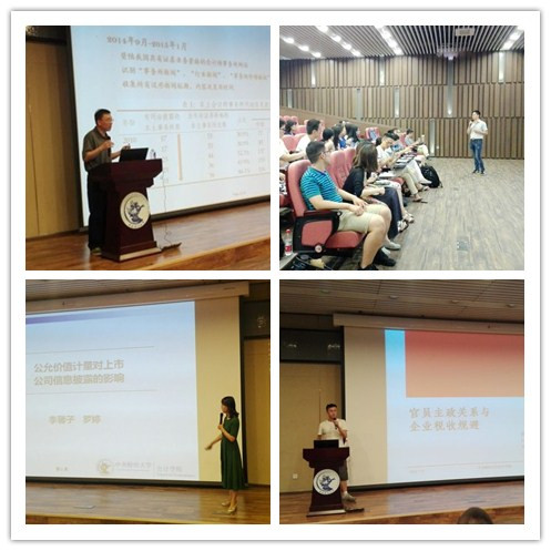 7月13日,在公司沙河校区骋望楼图书馆内报告厅进行了为期一天的夏季学术论坛。上午的教师论坛中,吴溪教授和李馨子老师分别报告了以《中国本土会计师事务所的网站信息能反映审计质量差异吗?》和《公允价值计量对上市公司信息披露的影响》为题的学术论文。下午的博士生论坛中,两名在读博士生黄健峤和孙龙渊分别汇报了以《官员主政关系与企业税收规避》和《审计任期、审计收费对事务所挽留客户的影响研究——基于1999-2014年证监会行政处罚的经验证据》为题的学术论文。论坛中,营员们针对论文提出了自己的疑问和看法,与老师们展开了热烈的讨论。同学们表示,通过学术论坛,加深了他们对会计学术研究的兴趣和对学术生活的理解。