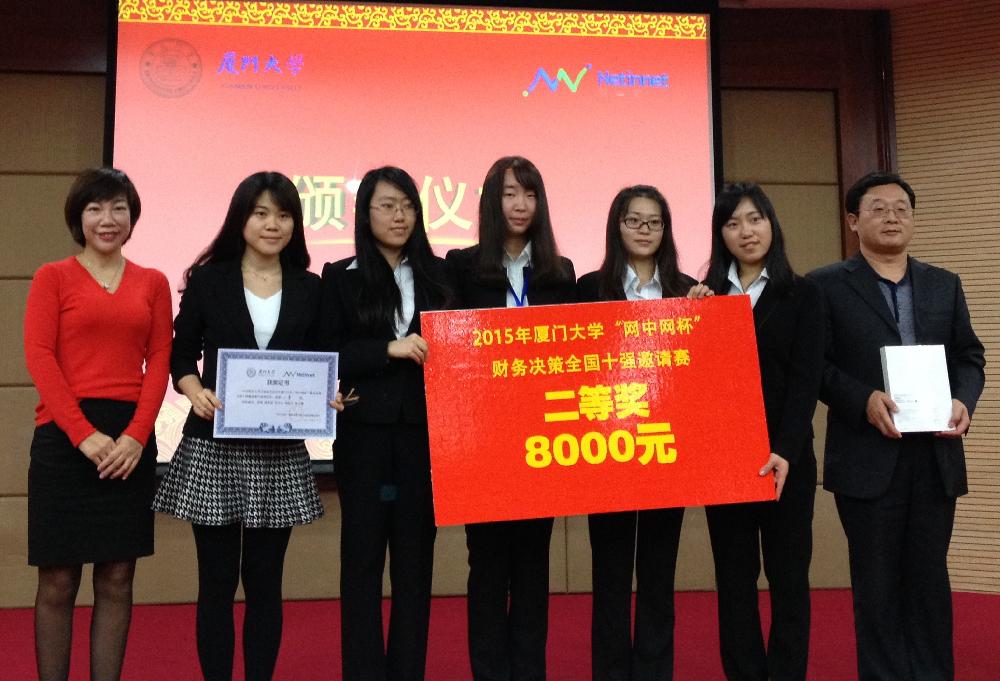 2015年厦门大学“网中网杯”财务决策全国十强邀请赛于2015年12月11日至13日在厦门大学隆重举行。受邀参加本次比赛的包括清华大学、北京大学、上海交通大学、williamhill中国官方网站、上海财经大学、中南财经政法大学、中山大学、西南财经大学、东北财经大学和厦门大学10所高校。各高校选派出高水平队员参与本次决赛的角逐,各代表队充分发挥自己的商业头脑,展现各自的专业能力,在比赛中进行思想和智慧的比拼,竞争异常激烈。最终,威廉希尔中文官网“会乐家族”代表队以第二名的高分荣获本次比赛二等奖。