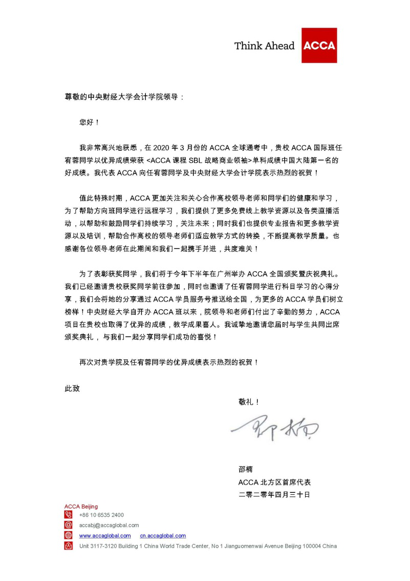ACCA中国代表处贺信
