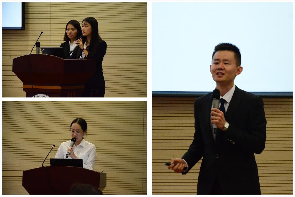 专题报告展示环节中,六个团队在有限的15至20分钟时间内,将几万字报告成果的核心内容辅以PPT展示出来。孙川川同学带领的队伍走进北京科锐公司,探索电力设备制造企业成本控制研究及价值链视角解决方案;陈广队深入中国工商银行,研究我国商业银行在信息化环境下的绩效管理;刘家祺队走进北京大学第三医院,分析了DRG支付下我国公立医院成本管理的问题和管理措施;韩聿萌队前往中国海洋石油总公司,调研财务信息系统的建设与优化及其对管理决策体系的支撑;李浩冉队走进中国中铁股份有限公司,研究“一带一路”背景下国企境外投资的绩效评价体系的建设;刘明慧队深入华夏幸福公司,研究财务共享中心质量管理发展之道。展示成员们或慷慨激昂,或娓娓道来,为大家献上一场思维盛宴。