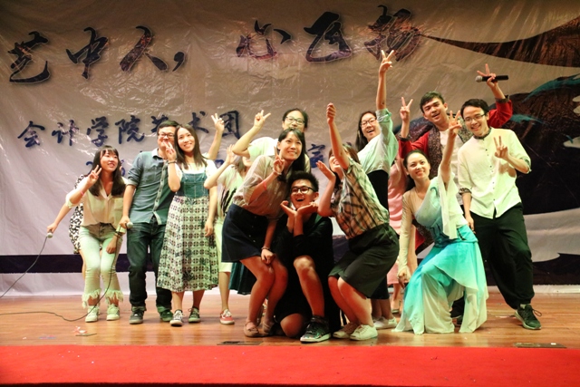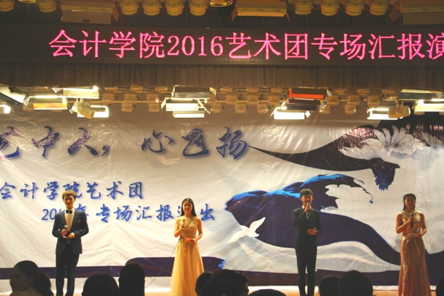 2016年5月27日晚7点,由威廉希尔中文官网艺术团主办的“艺中人,心飞扬”威廉希尔中文官网员工艺术团2016年专场汇报演出在williamhill中国官方网站沙河校区老员工活动中心金色大厅成功举办。公司党总支副书记孟雪老师,2015级财务管理班班主任陈玥老师,威廉希尔中文官网团总支书记、2014级辅导员林艺茹老师,2013级辅导员汤玥老师、2015级辅导员季美惠老师等多位老师与员工们共同观看了演出。