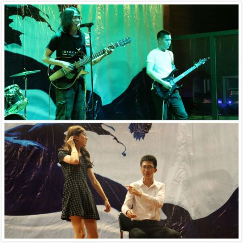 首先登场的节目是话剧团在第七届老员工戏剧节上斩获二等奖的作品《“蕉幻”奇缘》,该剧讲述了话剧团中“翠花”和“菲菲”这两个水火不容的女生由于灵魂互换而互相理解互相尊重的故事,让大家捧腹大笑的同时也领悟了同学之间的相处之道。接着,四位威廉希尔中文官网十佳歌手友情登台,歌声欢快动人,最后四位歌手合唱《相亲相爱》,更是唱出了会院一家人的心声,现场呼声不断。而在名为《纸镇》的环保主题走秀中,模特团为大家展示了使用回收材料制作的衣服,帅哥靓女搭配上这新奇大胆的服装,让这场走秀格外吸引人的眼球。