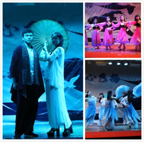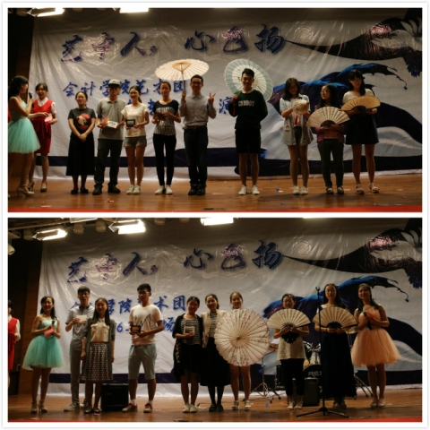 接下来的演出则是以“美”为主的风格,将演出的气氛推向高潮。舞蹈团的姑娘们带来的新疆舞《古扎丽古丽》,充满西域风情,当代舞《青花瓷》则将古典舞与现代舞结合到了一起,舞姿优美动人,让观众感动万分。随后是模特团和书法团带来的《水墨烟雨》江南水乡主题走秀及书法展览。女生们美丽优雅,男生们风度翩翩,走秀的结尾,两幅清秀俊逸的书法作品徐徐展开,更是让观众产生了置身古代江南的时空错觉。