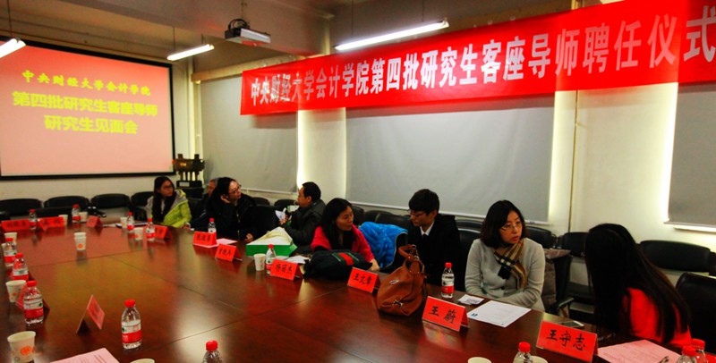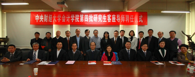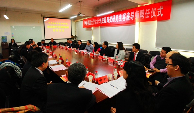 随后,中煤建设集团总会计师王文章老师和中国建筑材料集团有限公司财务部总经理曲新老师分别代表老一批和新一批研究生客座导师发言。他们表示,作为研究生客座导师,应该为研究生做好三个方面功课:一是结合多年工作经验和行业专长的引领,传授“看得见的专业知识”,力争弥补其校内所学知识的空白。二是通过加深沟通交流和言传身教的影响,展示“看不见的修养德行”,力争使其走入社会之前输入正能量。三是找准客座导师定位与量身定做的导向,提供“看得清的优质服务”,力争使其所学专业与现实业务对接。