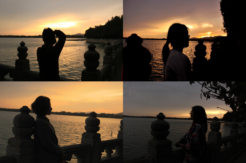 太阳逐渐落山,山头晚霞的光芒格外明亮,陈老师绕有兴趣地提出教学员们拍摄剪影。伴着美丽的落日,临着碧波荡漾的昆明湖水,“模特”独倚栏杆,眺望远方,学员们纷纷用老师教授的技巧定格下了小伙伴们的倩影。