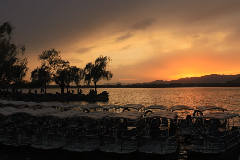 太阳快要落山时,大家走到了昆明湖边,轻风拂过,湖面微波粼粼,白天有些阴郁的雾霾天此时竟有些透亮了。“快看,那是晚霞吗?好美!”汤老师转身发现了山头美丽的晚霞。美景当前,同学们抑制不住激动之情,托着沉重的相机一路飞奔,只为尽快到达湖的对岸,寻一个更好的拍摄角度。此时,陈老师告诉大家,调高一点白平衡,能获得色彩更加浓重,对比更加鲜明的照片。大家尝试后果然拍出了不一样的效果,一边拍摄一边欣赏着自己的作品,心也跟着这美景陶醉起来,不仅为自己能拍出如此美丽的照片而兴奋,更是为祖国山河的壮丽而自豪!