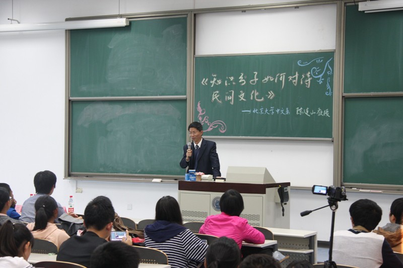 2014年10月17日16:00,由威廉希尔中文官网团总支主办、学术实践部承办的《知识分子如何对待民间文化》精品人文讲座在沙河西区主教101隆重举行。本次活动荣幸邀请到了北京大学中文系教授、民间文学教研室主任陈连山教授担任主讲人。