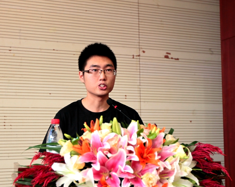 13级员工代表邓明杰同学和李晓晨同学分别用英文和中文发言,介绍了他们在校一年以来在思想、学习、工作和生活方面的进步和收获,发表了自己的体会和感悟,并和新生分享了他们的学习方法和心得,鼓励新生发愤图强,不断超越。他们代表所有13级同学对2014级新同学的到来表示欢迎,并祝愿他们能在中财度过一段美好的大学时光。