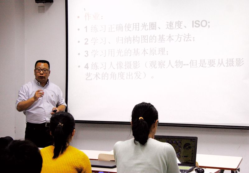 活动开始,同学们先作简短的自我介绍,在交流对摄影和生活的热爱之后,现场气氛变得轻松活跃起来。兴趣广泛的陈刚老师是中国摄影家协会会员、公司摄影协会副秘书长,他由摄影与照相,摄影与绘画的区别讲起,和同学们分享了自己的作品。他以生动形象的实例,帮助同学们理解摄影的基本概念,并让大家对这一思想情感表达的艺术形式有了新的认识。陈刚老师指出,摄影就是把日常生活中稍纵即逝的平凡事物转化为不朽的视觉图像。随后两个半小时的时间中,陈老师结合亲身摄影经历和理解,深入浅出地为同学们介绍了摄影的分类与术语,讲解了用光与拍摄技巧,构图与色彩运用等基础知识。他鼓励同学们把对摄影的热爱融入日常生活,勤思考,多感悟,在体验中提升。在丰富而有趣的讲解中,学员们对于摄影作品构思、思想内涵的明确,拍摄时机和人物情状的把握,手法技术和后期制作的选取,视觉冲击力的营造等这些构成摄影作品的元素有了更深入的理解和认识,也明确了自己未来学习和实践努力的方向。这次摄影小组培训讲座不仅极大地提高了同学们对摄影的积极性,丰富了同学们的课余生活,还促进了同学之间的交流。