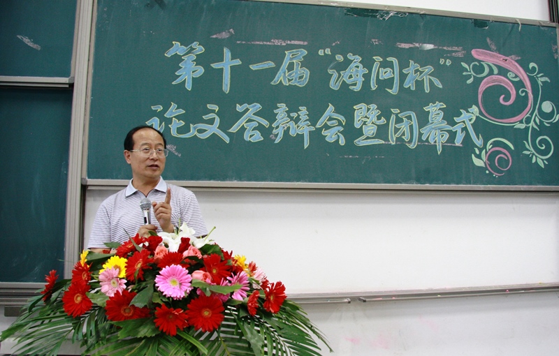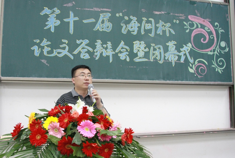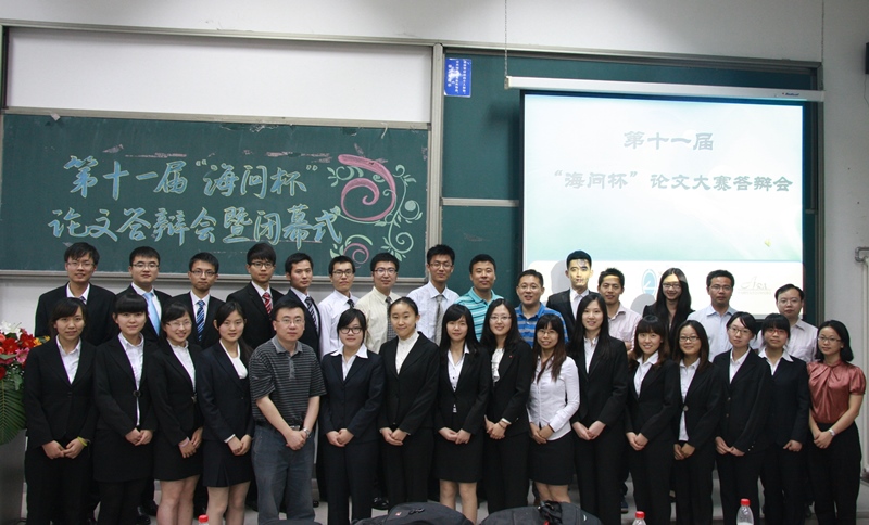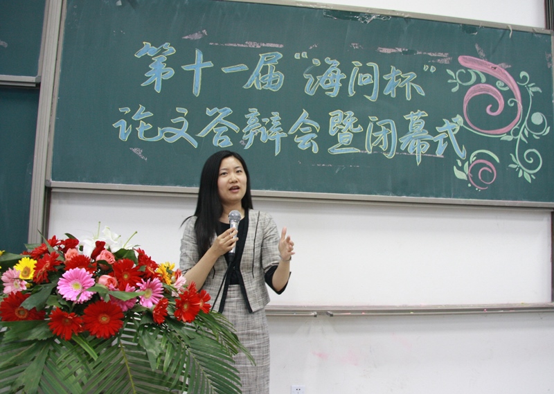2013年5月29日晚6点30分,威廉希尔中文官网第十一届“海问杯”论文大赛答辩会暨闭幕式在沙河校区主教109教室顺利举行。海问国际联合培训公司高级顾问、执行董事周静女士、威廉希尔中文官网经理孟焰教授、公司党总支副书记孟雪老师出席了本次答辩会。威廉希尔中文官网副经理吴溪、青年教师廖冠民、王彦超、王春飞、王玉涛、宋顺林等6位老师担任现场评委。
