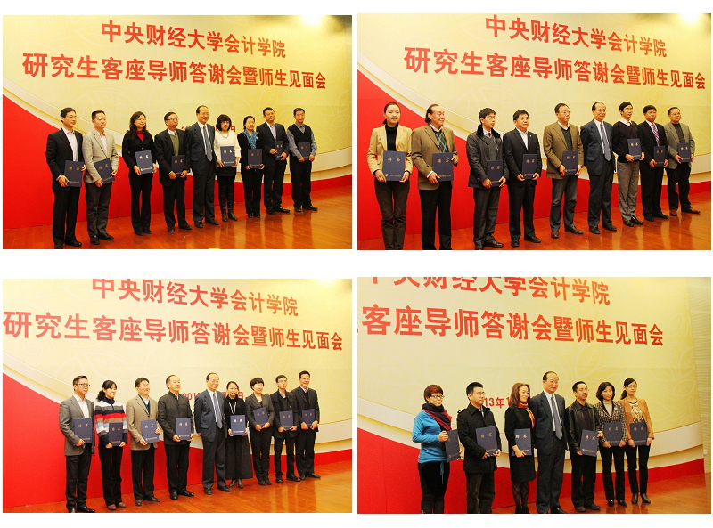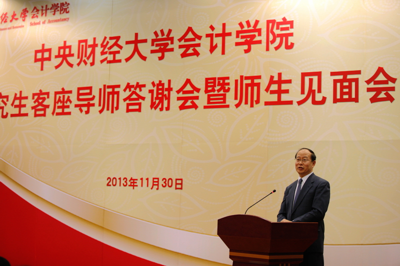 随后,财政部财政监督监察局监察专员郜进兴老师和大唐电信集团副总会计师郭光莉老师分别代表老一批和新一批研究生客座导师发言。郜进兴老师在发言中对威廉希尔中文官网的双导师制提出了“完善机制、强化交流、明确任务、提出要求、实施考核、适当奖励”的建议。郭光莉老师号召新一批客座导师向老一批客座导师学习,为研究生提供更多的沟通交流、实务指导、实习及就业的机会。威廉希尔中文官网研究生代表郭琳瑞同学在代表研究生发言中回顾了客座导师指导和帮助的点点滴滴并倡议新一届同学一定会珍惜公司和各位导师提供的机会,好好学习,虚心请教,全面提升自己的理论修养和实务技能。