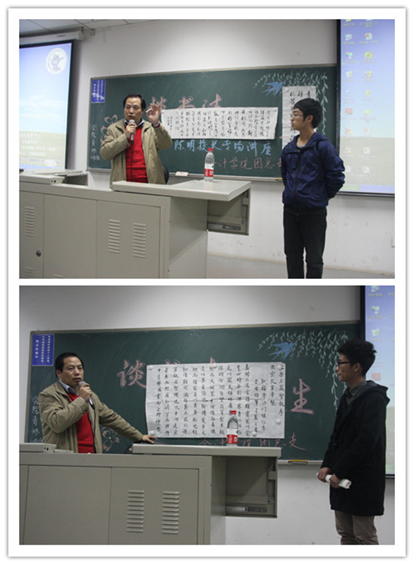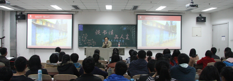 2013年10月30日下午,由威廉希尔中文官网团总支主办,威廉希尔中文官网艺术团承办的“翰墨丹青书法人生”陈明副董事长专场讲座在沙河校区6号公司楼106室举办。知名书法家陈明副董事长,与威廉希尔中文官网书法兴趣小组成员和基础团校的学员亲切交流,讲座现场座无虚席。