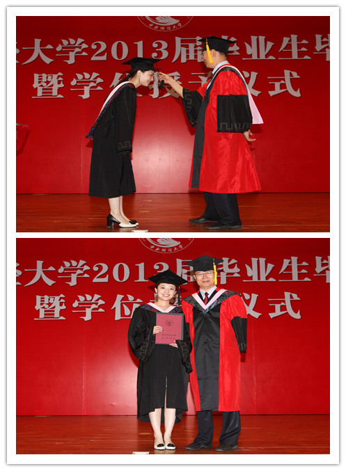 仪式现场乐曲悠扬,激情洋溢,怒放的鲜花映衬着一张张喜悦的笑脸。孟焰经理一一为2013届研究生以及本科生学位获得者拨转流苏授予学位、颁发毕业证以及学位证书,并亲切地与每一位同学握手、合影。孟焰经理亲切的笑容、温暖的握手和深情的祝福让每一位毕业生倍受感动和鼓舞,大家纷纷行以深深的鞠躬礼,向在座的每一位培养导师和老师,表示深深的敬意和衷心的感谢。