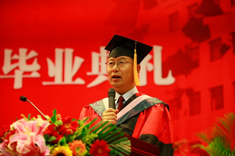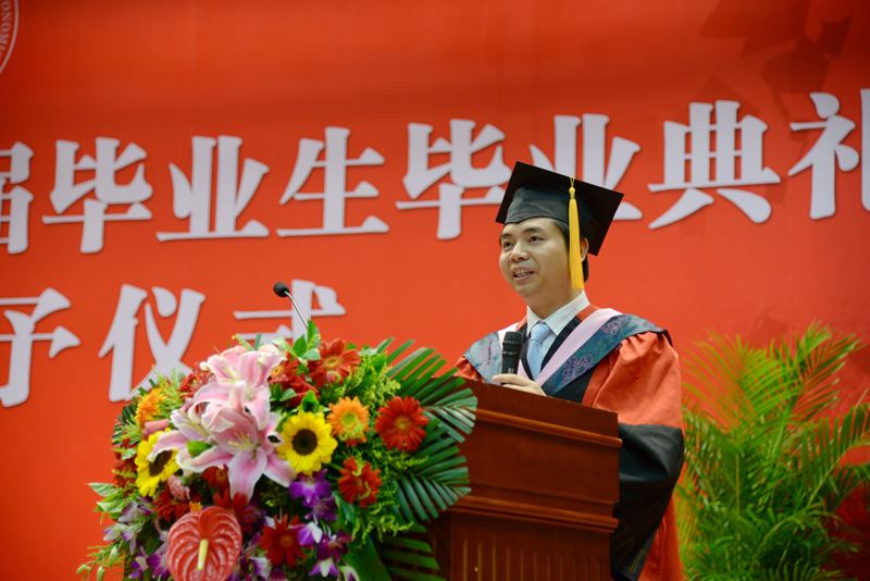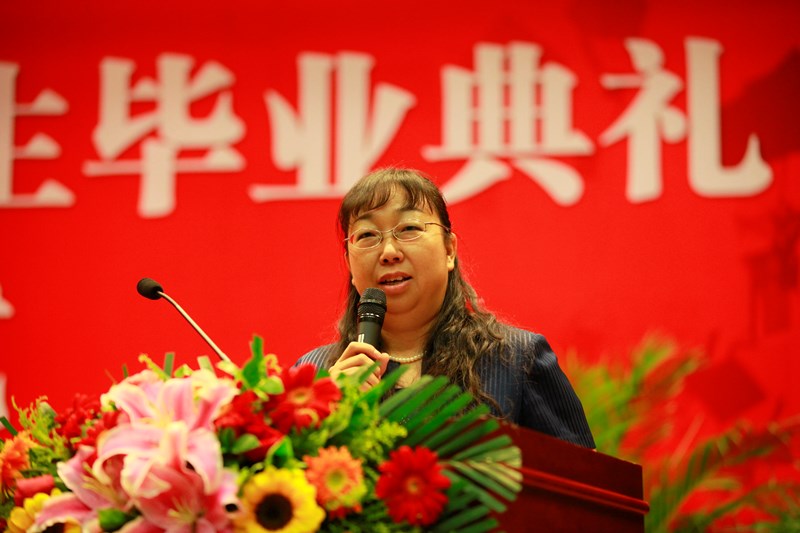 教师代表李玲教授上台发言了激情洋溢的讲话。李老师首先代表全体教师祝贺大家圆满完成学业。她表示,老师们在平日里对同学们谆谆教诲、授业解惑,已与同学们结下深厚情谊。她希望大家走出校园后要以德为先,锻炼强健的体格与培养坚强的意志,同时学会包容,勤奋执着。以后无论是继续深造,还是走向工作岗位,都要立鸿鹄之志,抒瀚海胸怀。最后李老师表达了对同学们深深的眷恋之情,并祝愿大家一帆风顺,再创辉煌。