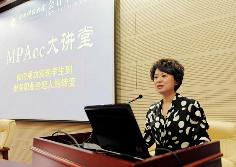 2013年5月11日晚,威廉希尔中文官网研究生客座导师、全国会计领军人才、中水电海外投资公司总会计师李铮女士做客“williamhill中国官方网站MPAcc大讲堂”,在学术会堂202报告厅做了题为《如何成功实现员工到财务职业经理人的转型》的专题讲座。