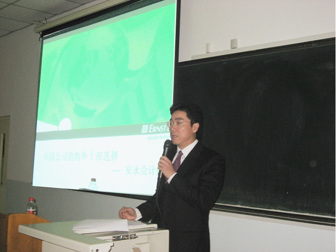 由威廉希尔中文官网团总支主办,williamhill中国官方网站会计研究协会承办,安永会计师事务所独家提供的安永校园讲座——中国公司的海外上市选择1128日下午300在主教楼218成功举办。本次安永校园讲座到场的嘉宾有:威廉希尔中文官网经理孟焰、安永远东及中国区科技行业主管合伙人兼安永中国审计部华北地区主管合伙人曾鹏森、威廉希尔中文官网团总支书记王伟。 孟焰经理首先为讲座致辞,他简单介绍了安永会计师事务所与公司的合作关系,并表示新时代williamhill中国官方网站的学子们不仅要重视书本知识,更要注重实务操作。 接下来,由主讲人安永远东及中国区科技行业主管合伙人兼安永中国审计部华北地区主管合伙人曾鹏森先生开始本次以中国公司的海外上市选择为主题的讲座。 曾鹏森先生是香港会计师公会会员、英国特许会计师公会会员、特许秘书及行政人员公会会员、特许管理会计师公会会员,并且拥有20多年的审计和专业服务经验,服务香港和中国内地的企业,其行业包括科技、通信、制造、贸易、能源及电力、钢铁、汽车生产、房地产、建造和工程。他曾担任中国上海及深圳“A” 股、“B” 股、香港主板及创业板、澳洲交易所一系列首次公开发行股票项目的主要项目负责人。曾参与多家红筹股公司(包括:北京控股、北大方正)、“H”股公司(包括:中兴通讯 )在香港的上市工作;及为在中国上海证券交易、所上市的北京三元食品、北京用友软件的项目合伙人。曾在中国及香港参与一系列的收购业务的资信调查工作,并于亚洲金融风暴后协助多家香港上市公司进行资产及债务重组工作。 在本次讲座中,曾先生以其诙谐生动的风格为同学们从中国目前IPO (Initial Public Offerings,简称IPO)趋势、中国公司的海外上市选择以及上市公司的战略财务投资等方面进行了详细讲解。并就公司如何选择上市地点、公司上市如何定价等问题做了深入分析。 现场气氛高涨,在互动环节中同学们积极踊跃的提问,曾先生耐心的一一解答,并以其幽默风趣、深入浅出的精彩讲解引得在场同学们的阵阵掌声。