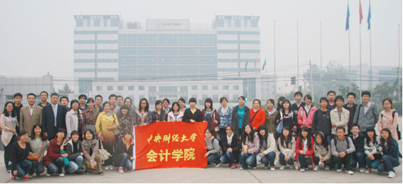 会议结束后,王国柱先生带着同学们参观了福田公司的装配车间,并在办公大楼前合影留念。