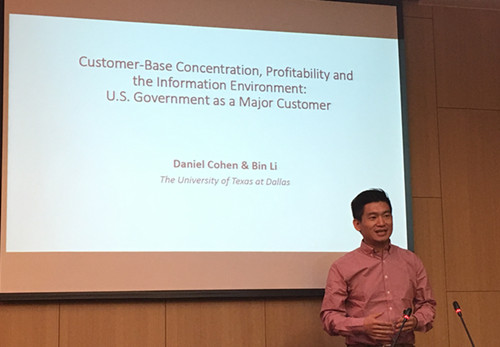 12月9日,美国德克萨斯大学达拉斯分校李斌教授来访威廉希尔中文官网,为在场师生带来了题为“Customer-Base Concentration, Profitability and the Information Environment: The U.S. Government as a Major Customer”的精彩报告。李斌现任美国德克萨斯州立大学达拉斯分校助理教授,他于2012年获得杜克大学会计学博士学位,主要研究领域包括资本市场、企业价值评估、会计准则有效性评估等,研究成果发表于The Accounting Review等国际顶尖期刊。