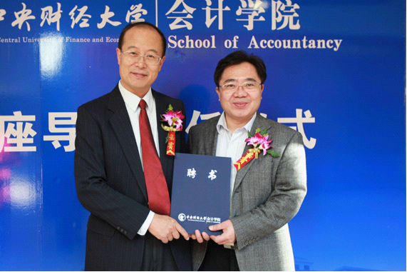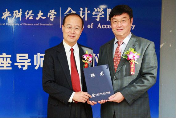 孟焰教授向财政部会计司副司长刘光忠颁发客座导师聘书